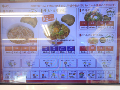メニューは、牛めしだけではなく、カレーを始めいろいろ多数そろっていて、朝用のお手ごろな定食も魅力です。