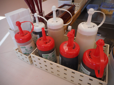 サラダ用のドレッシングや焼肉用のたれ、あとしょうゆや七味などの薬味も自由に使えます。