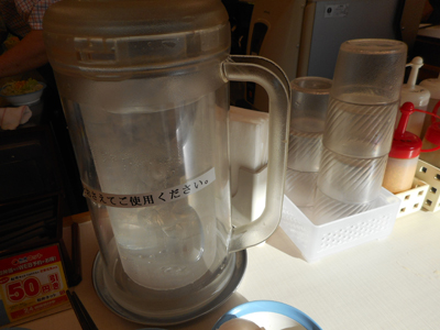 カウンターに座ると温かいお茶を出されますが、目の前の水も自由に飲むことが可能です。